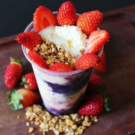 Delicioso Açaí Com Guarana e cupuaçu, leite em pó, Leite Condensado, Granola e Morango. (Nesse produto não poderá sem alterados itens, adicionados ou retirados.)