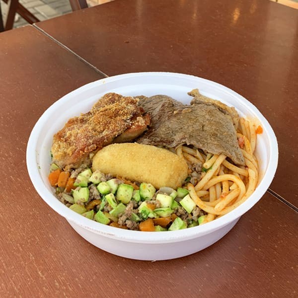 Marmita do dia 🥩 Posta ao molho 🐔 Frango Empanado 🍚 Arroz 🫘 Feijão Preto 🍝 Macarrão ao sugo 🥨 Farofa da casa 🥗 Refogado 🥔 Polenta frita