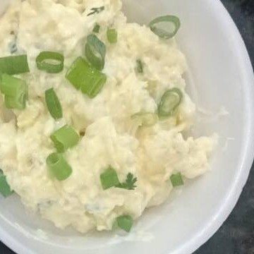Arroz branco, farofa especial , polenta frita e maionese
