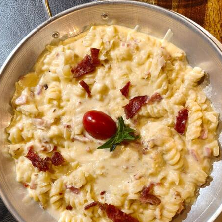 lássico italiano preparado com bacon crocante, envolvido em um creme aveludado à base de queijos e temperos especiais, finalizado com toque de pimenta-do-reino. Cremoso, intenso e extremamente saboroso, entrega o equilíbrio perfeito entre a suculência do bacon e a textura marcante do molho. Encorpado. Cremoso. Irresistível em cada garfada.
