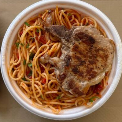 Macarrão C Bisteca Grelhada+ R$15,90 Compre Outra Marmita