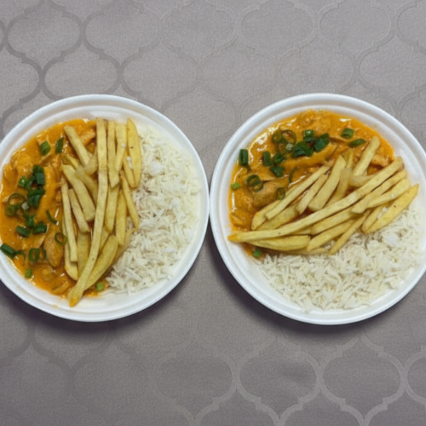 Marmita composta por: Arroz, Fritas & Parmegiana de frango Peso aproximado: 450g