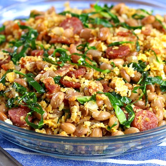 Para os amantes da comida mineira/goiana, feijão, bacon, farofa, linguiça