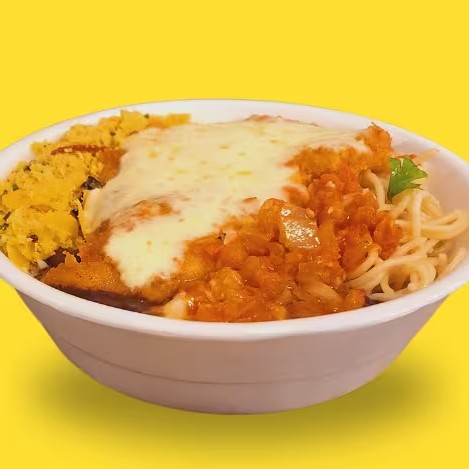 Uma refeição feita com carinho, perfeita para os apaixonados por sabor!Peito de frango empanado crocante, coberto com molho de tomate caseiro e queijo derretido, gratinado no ponto certo.Acompanha arroz soltinho, feijão bem temperado, macarrão simples, farofa crocante e uma salada fresca e nutritiva.Ideal para um almoço completo e delicioso!
