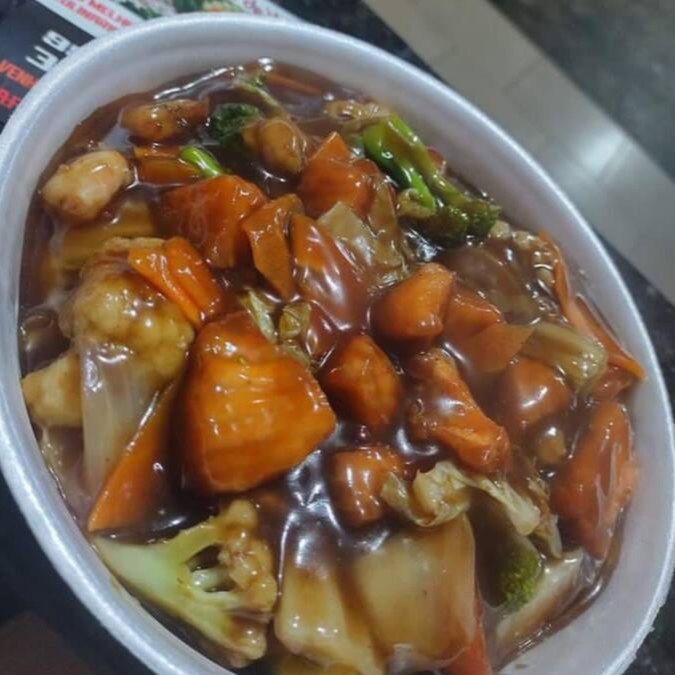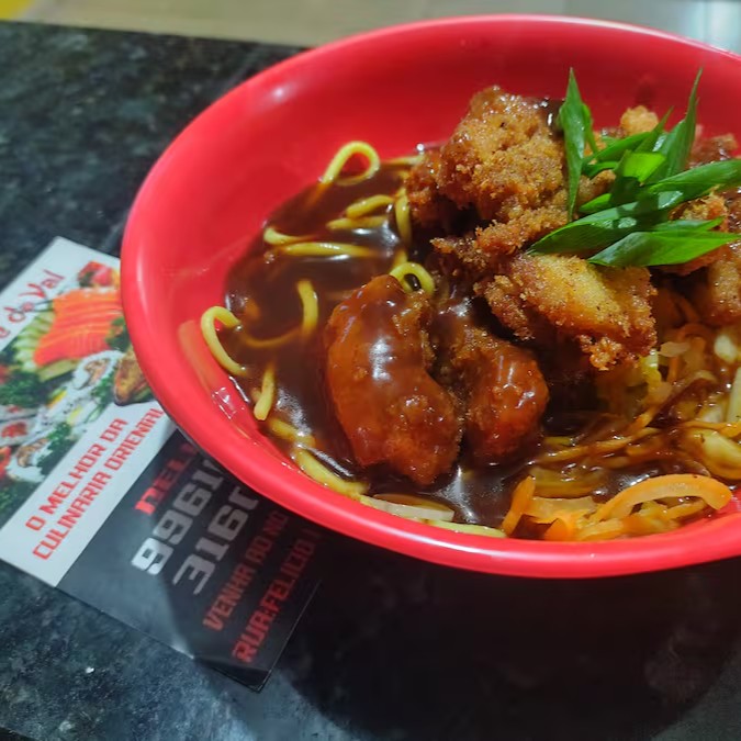 (macarrão de yakisoba,carne bovina,legumes e o molho oriental).