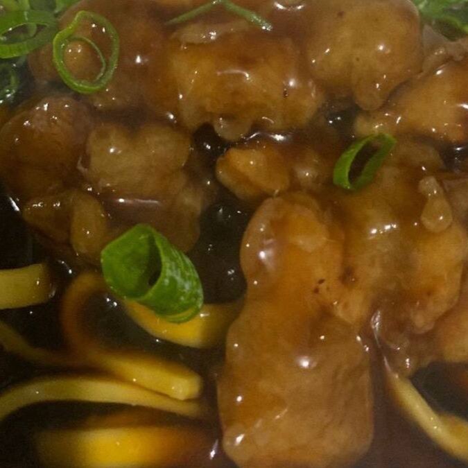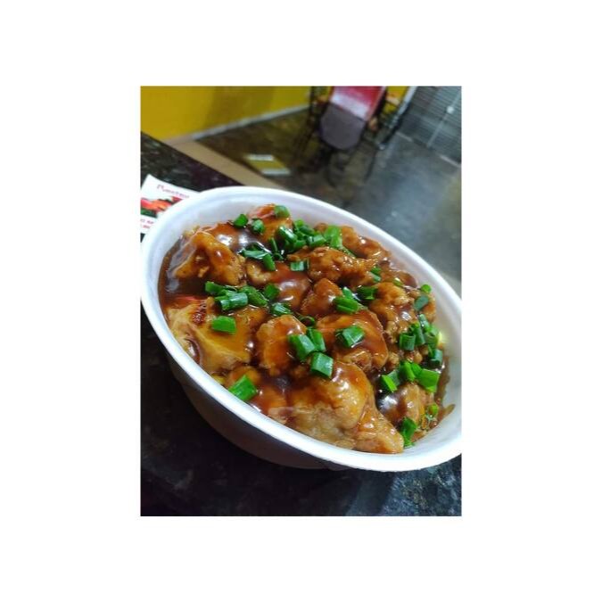 Coxa sobre coxa empanada,macarraão,molho oriental com um toque de gengibre e cebolinha.