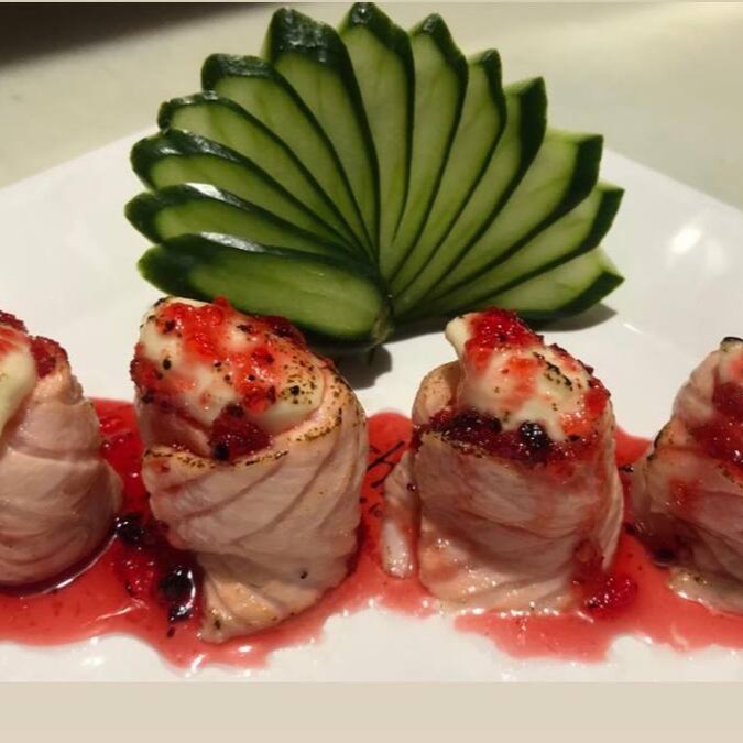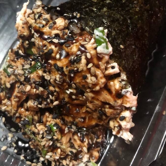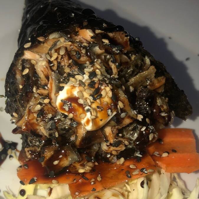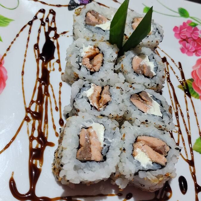 Alga maior(20 cm) recheio de salmão e cream chesse,em cima molho tarê e cebolinha