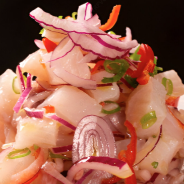 Cebola roxa,pimentões,tilápia,salmão,marinados ao molho de limão aprox 400 gramas.