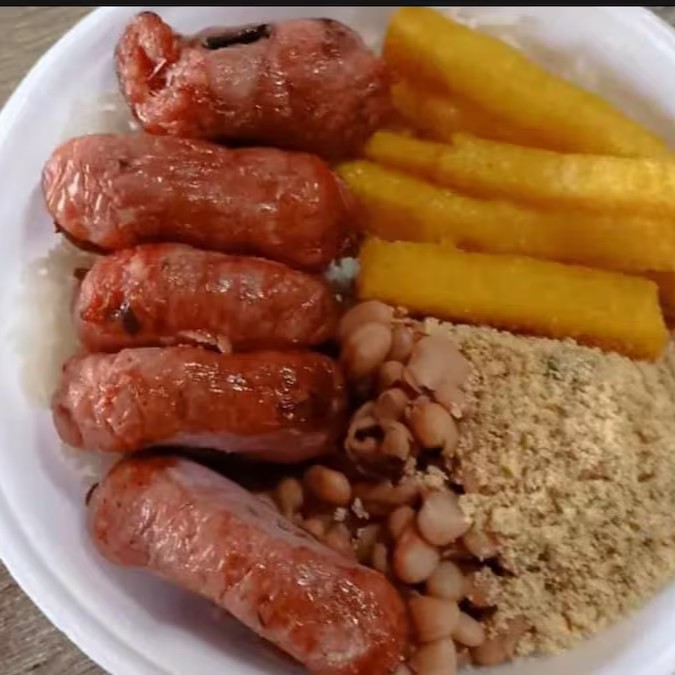 Acompanha: arroz, feijão, polenta frita, farofa, 5 linguiças toscana e uma maionese (não fazemos trocas ou substituímos o produto