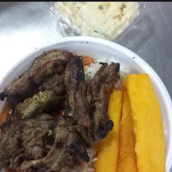 Acompanha aproximadamente 0,400g de carneiro, arroz, maionese e farofa