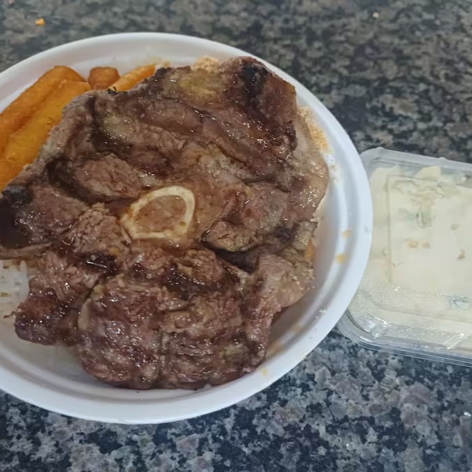 Acompanha: arroz, maionese e uma fatia de costela de aproximadamente 250g