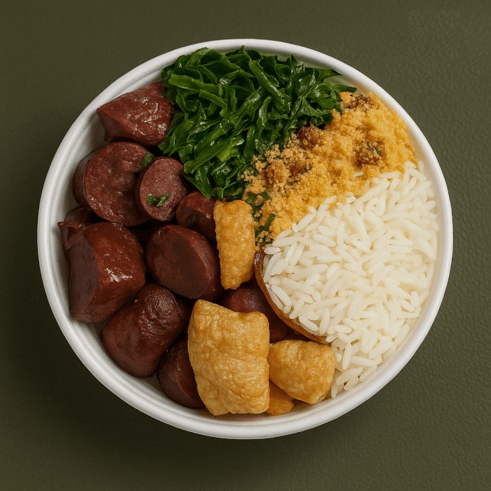 Feijoada magra e irresistível, feita com costelinha suína, linguiça calabresa e lombinho, servida com arroz branco soltinho, couve refogada, torresmo crocante, vinagrete fresco e farofa especial de chef. Acompanha pote de 500ml da nossa feijoada, perfeita para um almoço completo, saboroso e com o verdadeiro gosto de comida caseira.