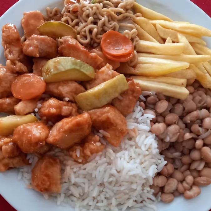 Arroz feijão batata frango xadrez comida brasileira