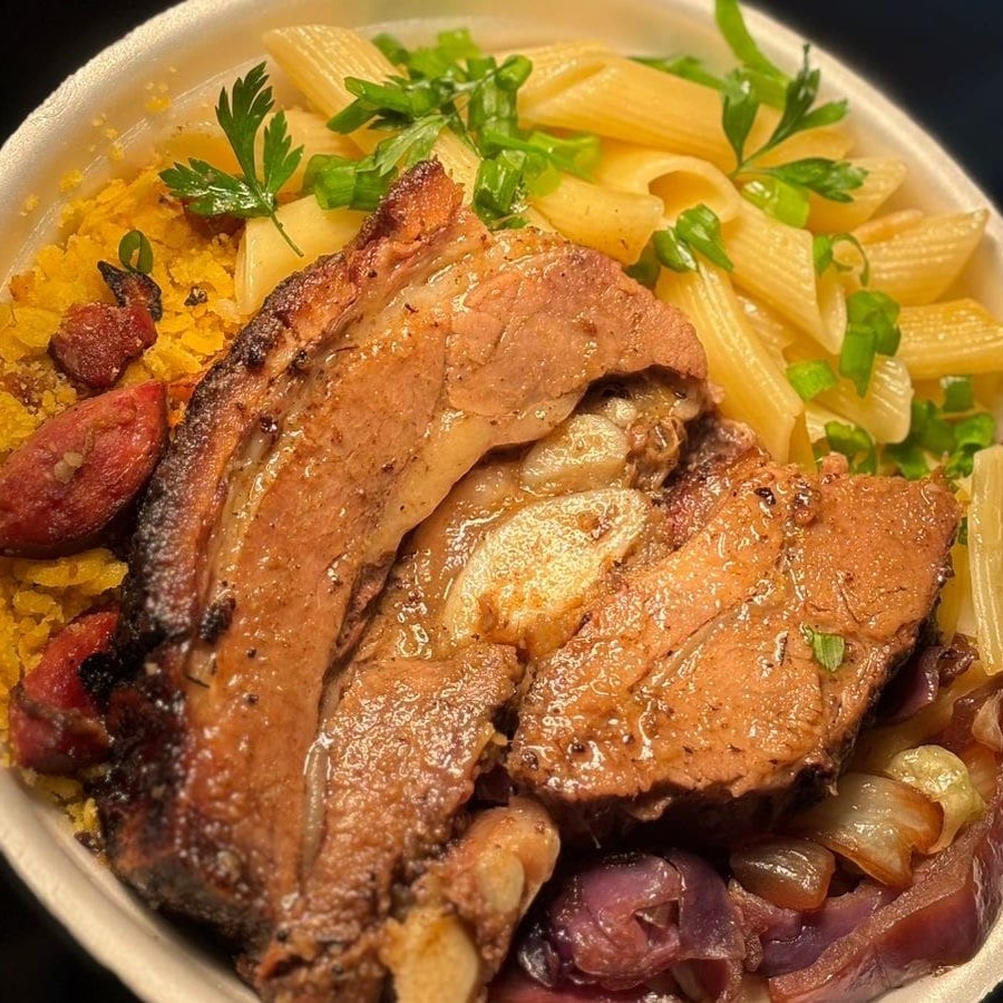 Suculento corte bovino grelhado, acompanhado de farofa crocante, arroz soltinho, feijão muito bem temperado, macarrão, legumes e polenta frita. Uma explosão de sabores que vai te deixar satisfeito!