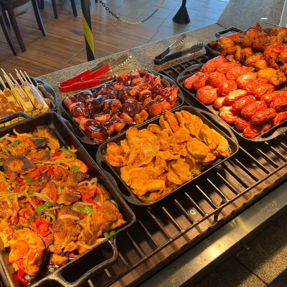 Um delicioso mix de churrasco com linguiça, coxa sobre coxa, espeto de queijo coalho e um arroz soltinho muito bem temperado.