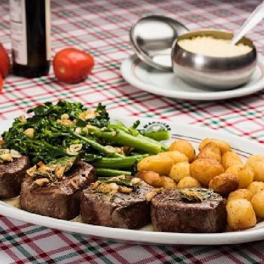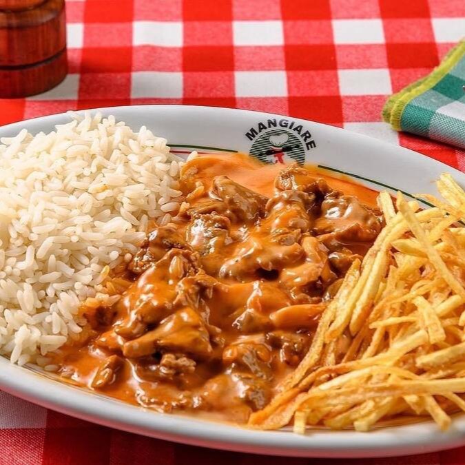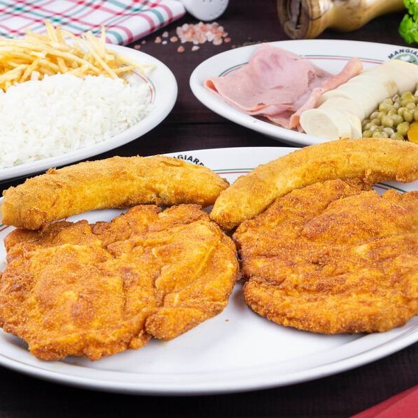 400g Filé mignon empanado, molho ao sugo, gratinado com muçarela. Acompanha arroz, farofa e tagliarinni na manteiga.