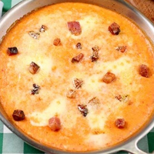 Molho rosado, bacon, gratinado com Catupiry