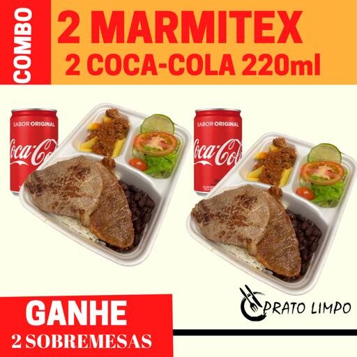 Combo 2 Marmitex + 2 Refri 220 Ml + 2 Sobremesas (2 Pessoas)