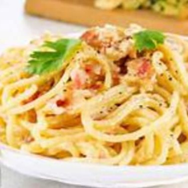 Deliciosa massa grano duro, molho branco, gema de ovo, manteiga e bacon, salsinha e manjericão. Os adicionais pagos (extras) já são incluídos no preparo, exceto o extra de parmesão que vai separado.