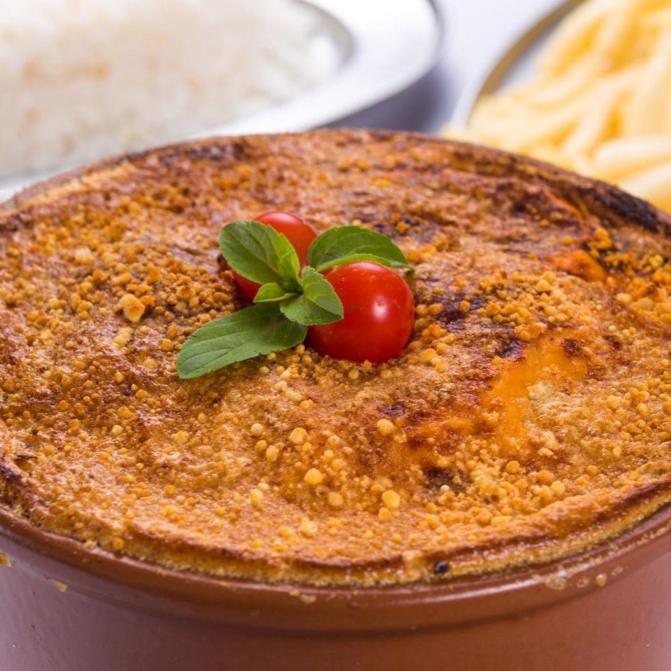 Um dos nossos pratos mais aclamados agora na versão Vegana! Feita com palmito, banana da terra, couve flor e nossa irresistível base de azeite de dendê, leite de coco, pimentões e coentro. Temperado com carinho. Acompanha arroz branco e farofa de dendê.