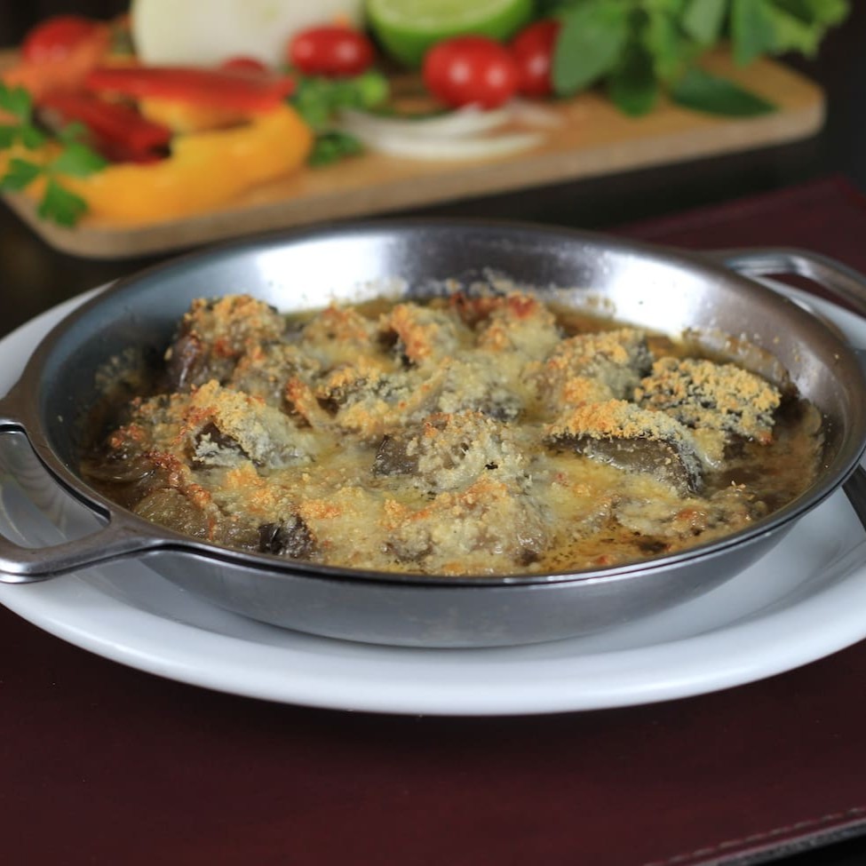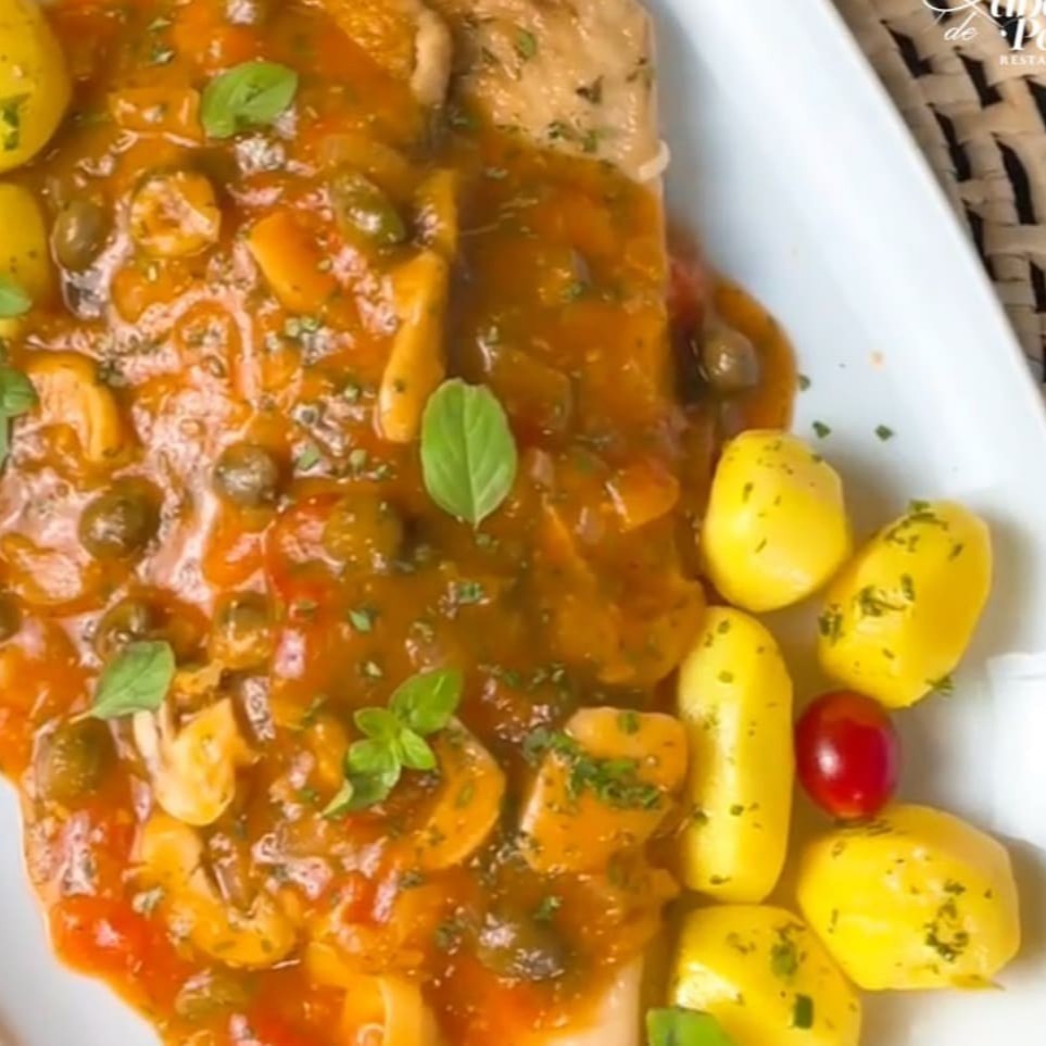 Com saboroso molho italiano à base de tomates secos, alcaparras e champignons. Acompanha arroz branco e batata sautê.