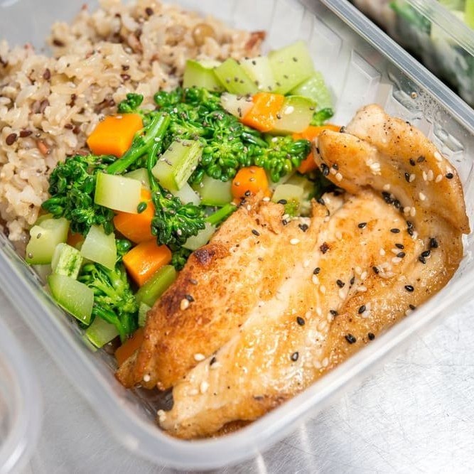 Uma deliosa comida caseira com um suculento peito de frango grelhado acompanha:Arroz soltinho,feijao cremoso temperado com alho,macarrão alho e óleo,refogado de legumes,e uma frituta crocante e saborosa