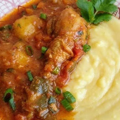 Deliciosa Marmita de polenta cremosa com um delicioso frango ao molho bem suculento e bem temperado