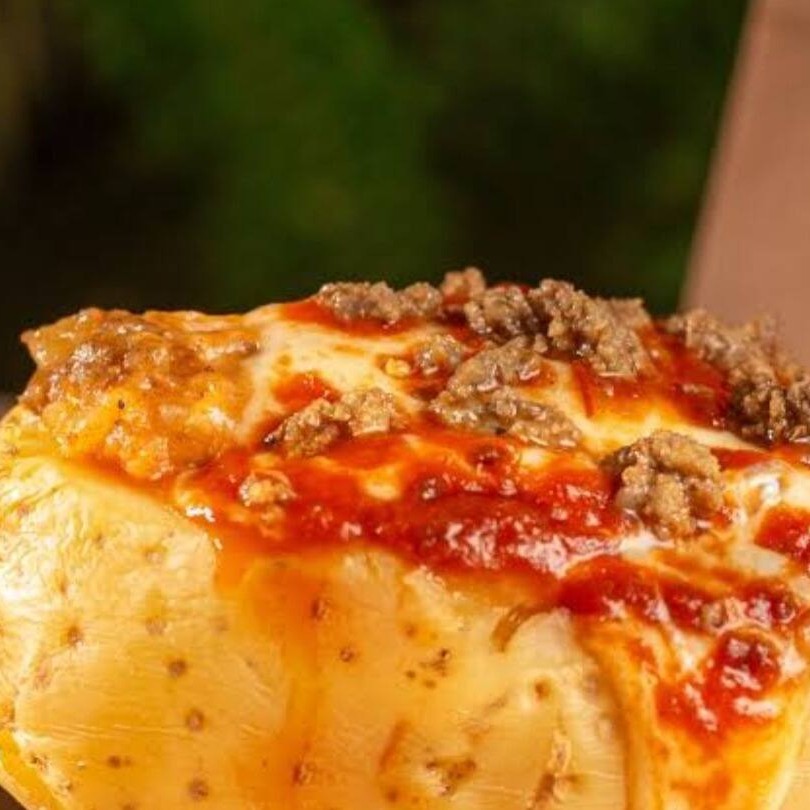350g batata assada,molho a bolonhesa suculento e bem temperado,com ingredientes de alta qualidade! Acompanha: queijo mussarela gratinado,manteiga,requeijao cremoso,cheiro verde (alho triturado opcional) mais da um toque especial