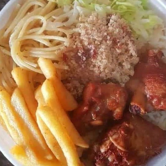 Deliciosa comida caseira,acompanha:Arroz soltinho,feijao temperado com alho,macarrao,refogado de legumes,fritura,farofa temperada com bacon e calabresa,frango a passarinho frito acompanha salada fresca