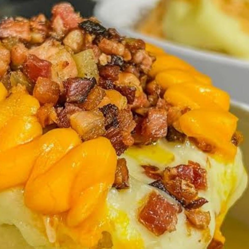 350g de batata assada,com ingredientes de alta qualidade! Acompanha: bacon frito suculento,cheddar,manteiga,queijo mussarela gratinado e cheiro verde