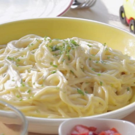 Deliciosa marmita de macarrao espaguete ao molho branco
