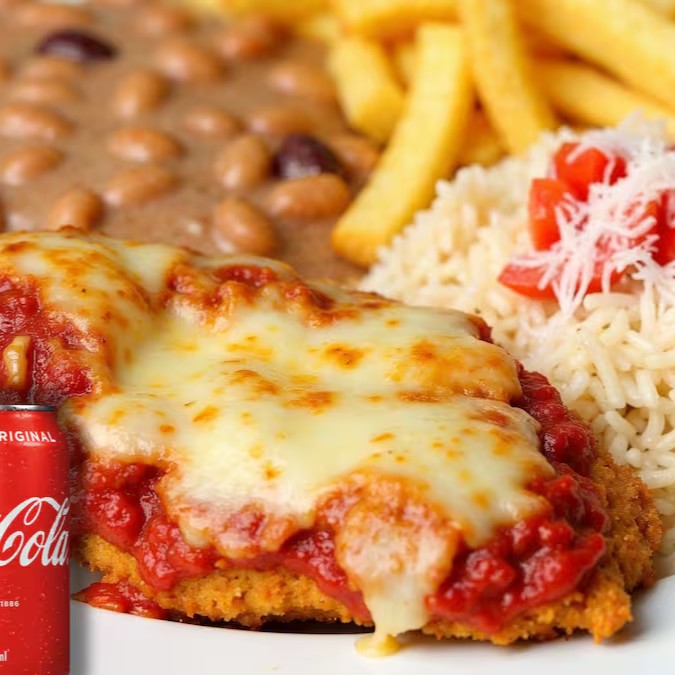Frango À Parmegiana + Fritas E Farofa + Coca-cola 350ml ( Serve 1 Pessoa )