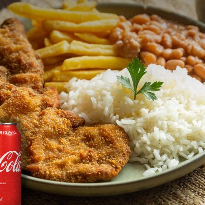 Frango À Milanesa + Fritas E Farofa + Coca-cola 350ml ( Serve 1 Pessoa )