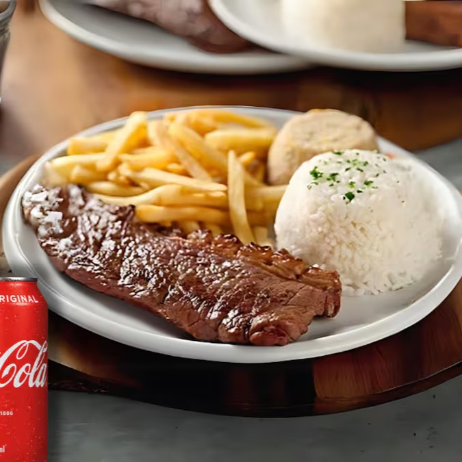 Bife Grelhado + Fritas E Farofa + Coca-cola 350ml ( Serve 1 Pessoa )