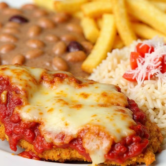 Frango À Parmegiana + Fritas E Farofa ( Serve 1 Pessoa )