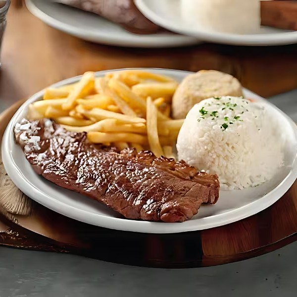 Bife Grelhado + Fritas E Farofa ( Serve 1 Pessoa )