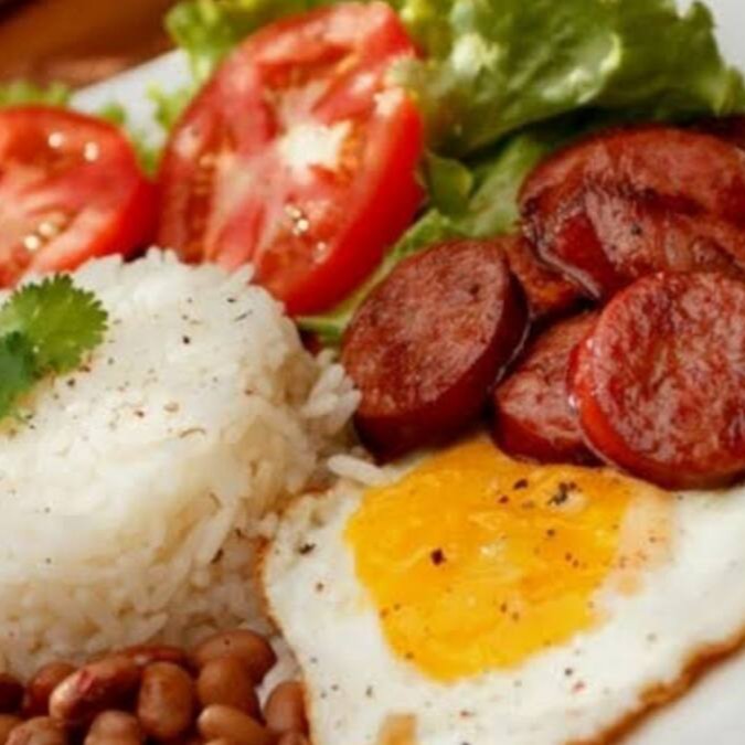 2 Ovos Fritos, Arroz, Feijão,macarrão,refogado do Dia ,batata frita