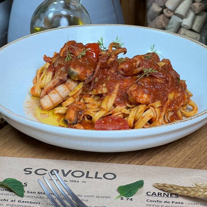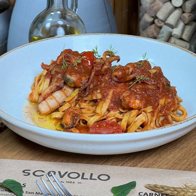 Talharim scavollo ao molho de frutos do mar ( Lula, Marisco e camarão)