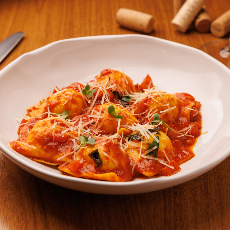 Recheado de queijo ao molho pomodoro basílico com tomates frescos