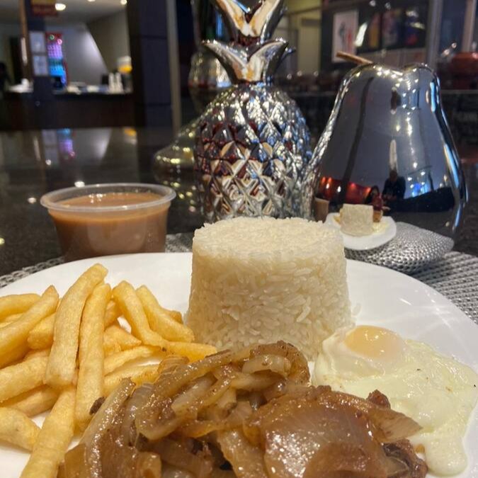 Arroz Branco, Feijão, (Carne) Bife Acebolado, Ovo Frito e Batata-Frita