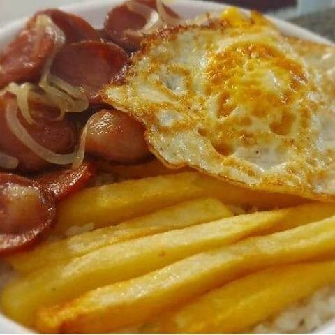 arroz,feijão,refogado do dia,batata frita salada do dia