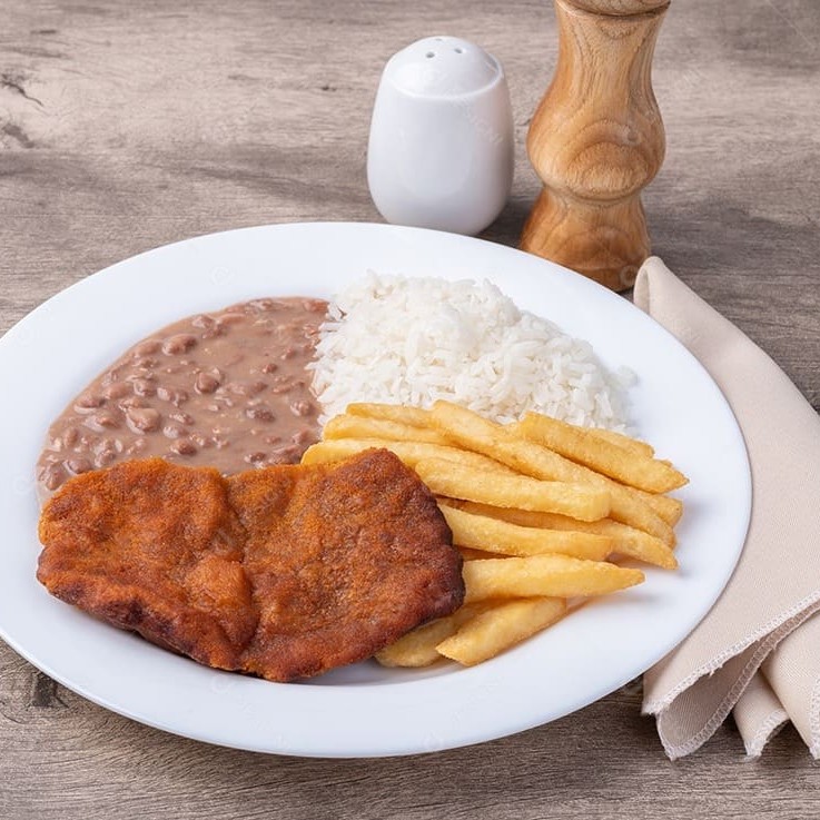 "peixe A Milanesa Crocante + Batata Frita + Arroz + Feijão ""marmita"""