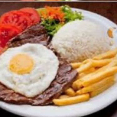 Bife suculento a cavalo, acompanhado de arroz fresquinho, feijão temperado, macarrão, legumes selecionados, batata frita crocante, farofa da casa e uma salada fresquinha para completar. Sabor e qualidade em cada mordida!