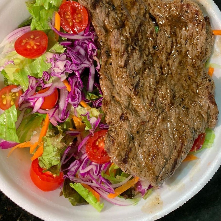 Saboreie nosso 'Salada & Grelhado (Bife ou Frango)', uma deliciosa seleção da categoria 'Marmitas'. Este prato é composto por um mix de saladas frescas e vibrantes do Dia, que podem variar entre a crocância do alface, a suavidade do repolho, o frescor do pepino, o toque agridoce da cebola, a suculência do tomate, a doçura da cenoura, a intensidade da beterraba e a personalidade da cebola roxa. Oferecemos de 3 a 4 opções selecionadas diariamente, dependendo do Dia. A imagem é meramente ilustrativa, mas o sabor é autêntico e inesquecível.