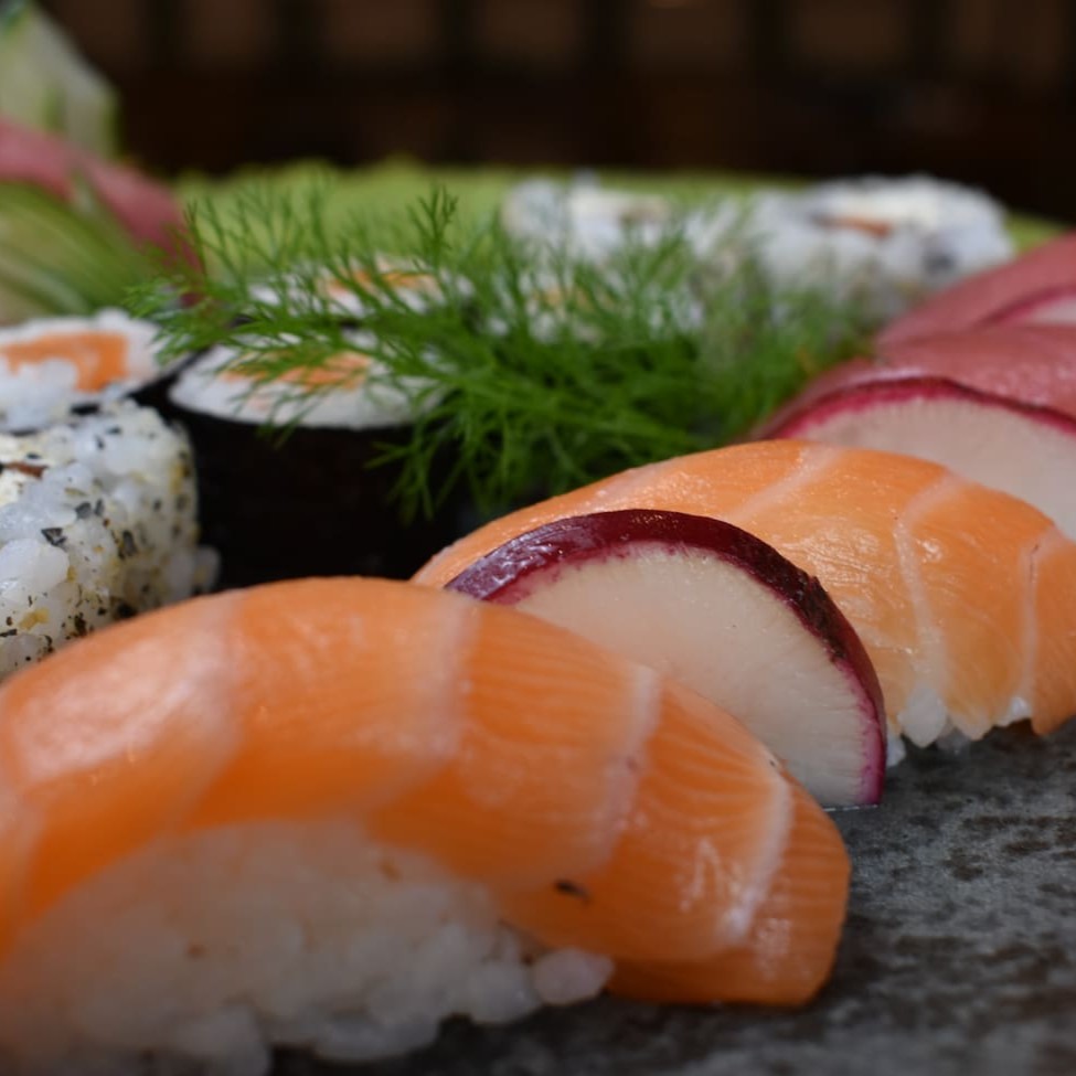 Delicie-se com a nossa seleção 'Sushi 1', cuidadosamente preparada para os amantes da culinária japonesa. Inclui 2 peças de Nigiri de Salmão, uma opção clássica e saborosa, com fatias de salmão fresco e arroz de sushi perfeitamente temperado. Acompanha 4 rolos de Uramaki Califórnia, uma combinação exótica e deliciosa de frutas e arroz enrolados em alga, e 4 rolos de Uramaki Romeu e Julieta, uma inovação irresistível que traz a combinação perfeita do queijo cremoso com a goiabada. Uma experiência culinária única entre o doce e o salgado.