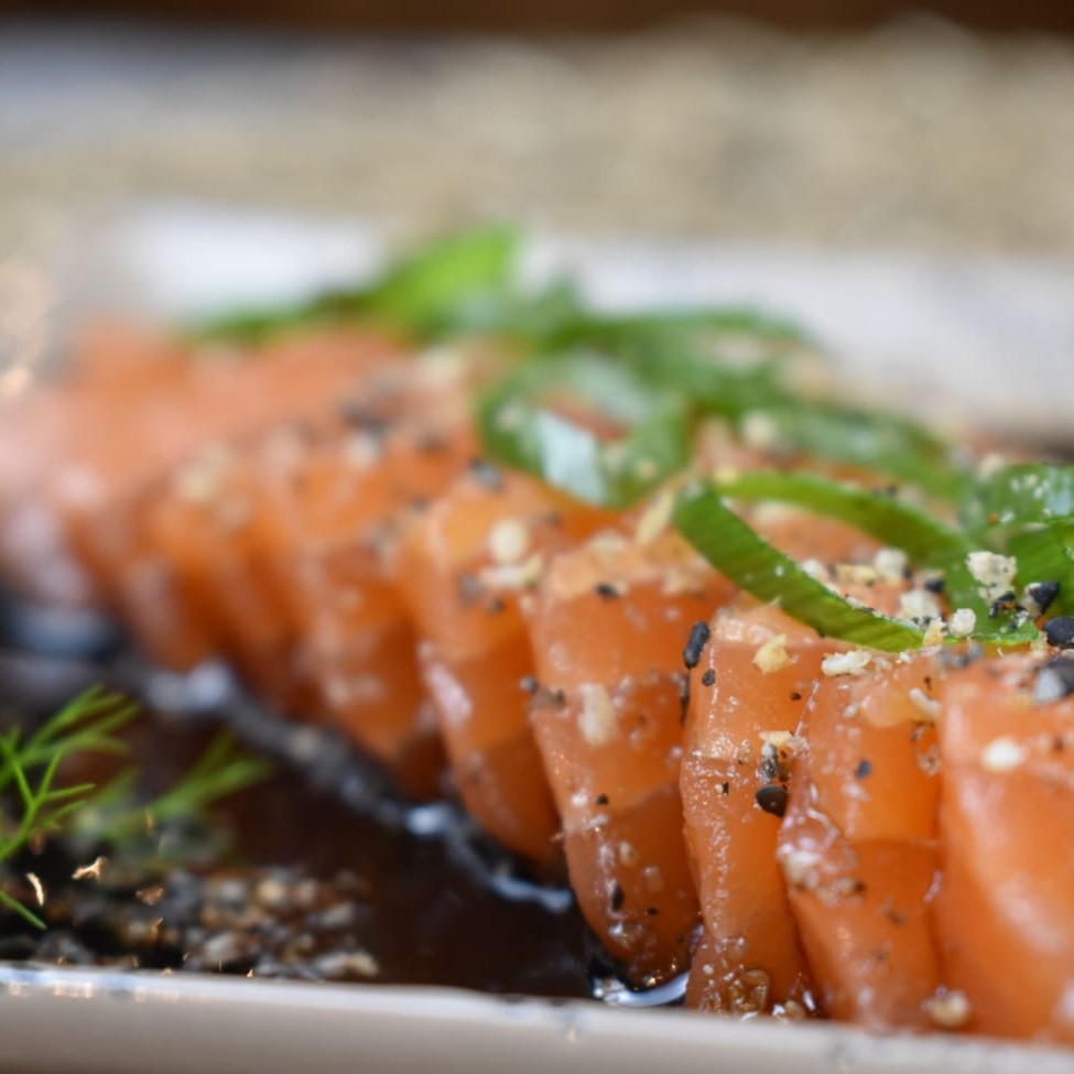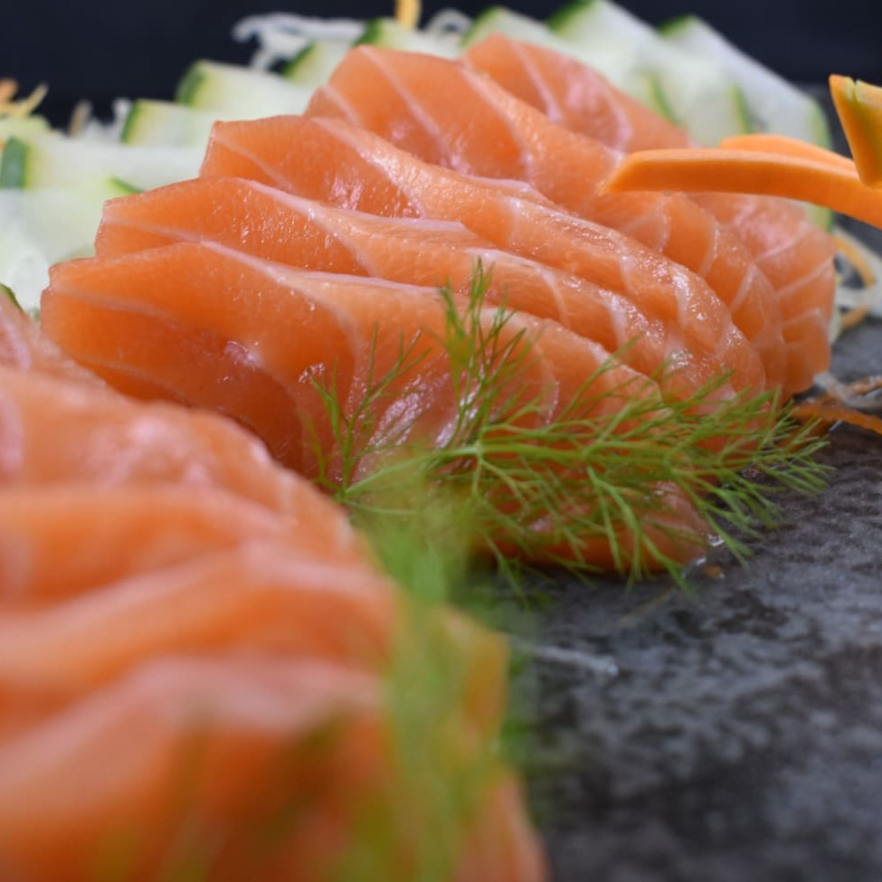 Delicie-se com o nosso Sashimi de Salmão, uma autêntica joia da culinária japonesa. Cuidadosamente preparado, o prato apresenta 10 generosas fatias de salmão de alta qualidade, cortadas com precisão e maestria. Cada fatia de salmão, com sua textura suave e sabor distintamente rico, promete uma experiência gastronômica inigualável. Este é um prato perfeito para os amantes de frutos do mar e para aqueles que apreciam a arte e a simplicidade da cozinha japonesa. Uma verdadeira celebração ao paladar!