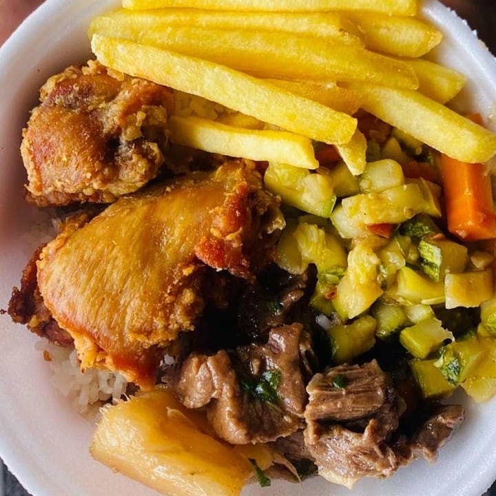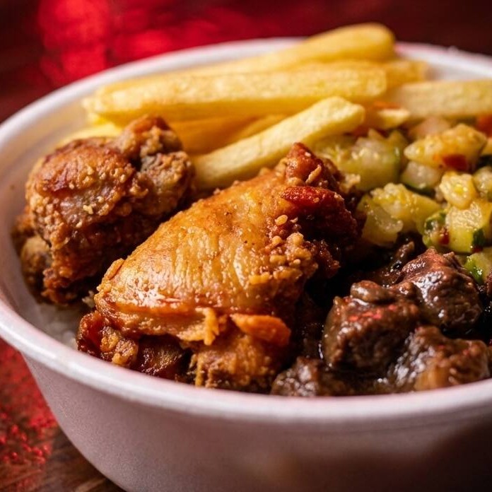 Esta maravilhosa marmita traz o prazer do lar para o seu prato! Com um arroz soltinho e bem temperado, acompanhado de um feijão com um sabor caseiro incomparável. As opções do Dia adicionam um toque de variedade e surpresa, tornando cada refeição única. A batata frita, crocante e dourada, é a companheira ideal para o frango a passarinho, que é suculento e preparado com especiarias que realçam seu sabor. Uma porção generosa que promete satisfazer seu apetite e aguçar o seu paladar.