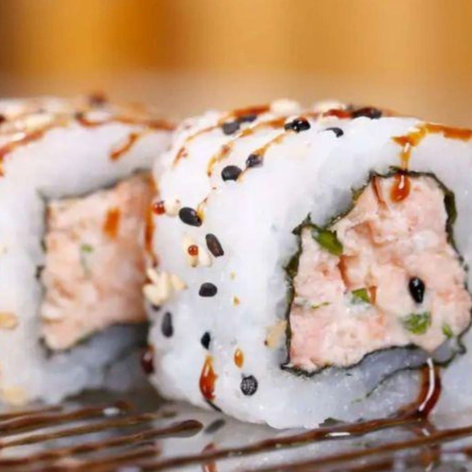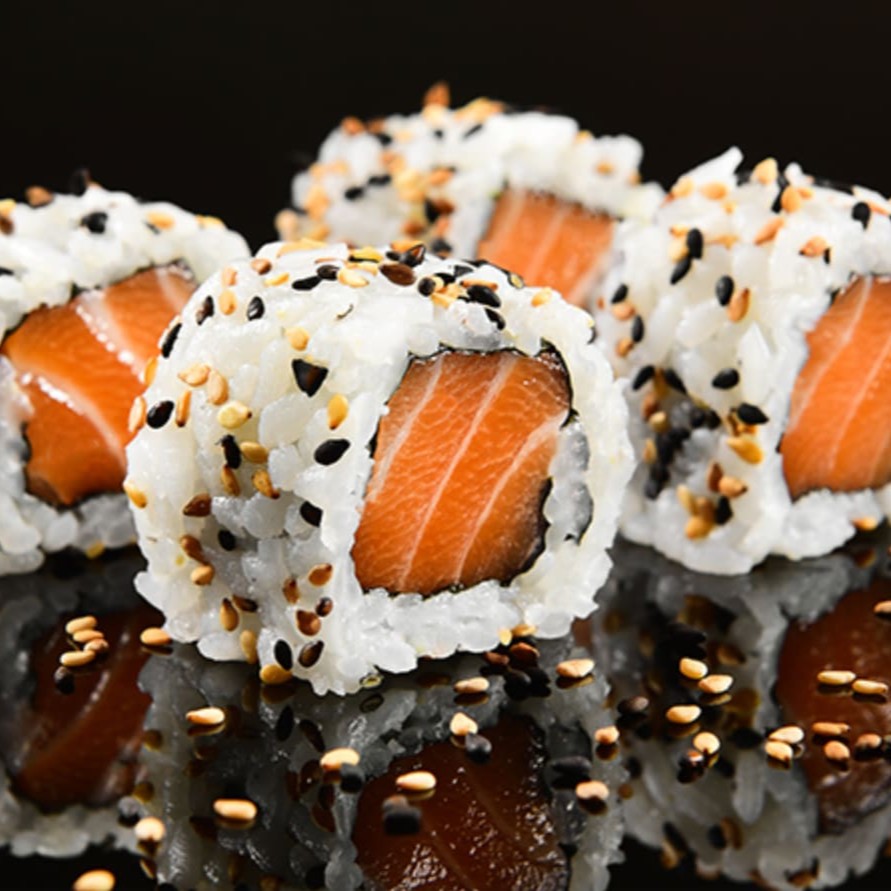 Uramaki de Salmão, com 8 unidades, é uma deliciosa opção para os amantes de sushi. Este prato saboroso e sofisticado é delicadamente enrolado com uma camada de arroz de alta qualidade, salpicado com gergelim torrado que adiciona uma textura crocante irresistível. Envolve-se tudo isso com uma folha de alga nori seca e finaliza-se com um recheio generoso de salmão fresco, suculento e levemente adocicado. Uma experiência gastronômica que equilibra perfeitamente os sabores e texturas tradicionais da culinária japonesa.