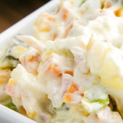 Nosso prato 'Maionese', da categoria 'Marmitas e Porções', é uma deliciosa opção para quem aprecia sabores tradicionais. Trata-se de uma maionese de batata de textura suave e cremosa, cuidadosamente preparada para garantir um sabor único e marcante. Seu paladar vai se encantar com o equilíbrio perfeito e o toque de cremosidade que esta porção oferece. Ideal para complementar sua marmita ou para uma pequena indulgência no meio do Dia. Experimente e deixe essa maionese deliciosa surpreender você!