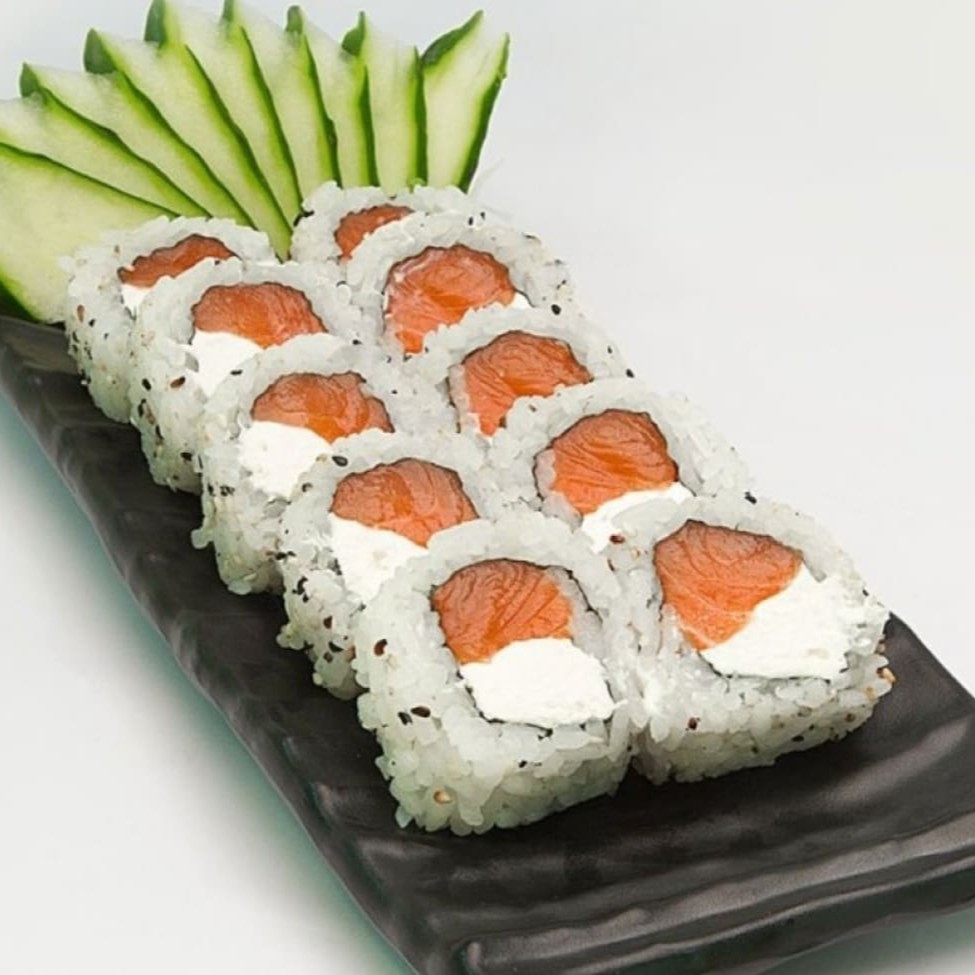 Delicioso Uramaki Filadelfia com 8 unidades. Este prato é uma apreciada combinação de suave arroz enrolado, realçado com a crocância sutil do gergelim. O toque especial fica por conta da alga fresca, que envolve um generoso recheio de salmão macio e fresco. A cremosidade aveludada do cream cheese Filadelfia eleva a experiência, proporcionando um equilíbrio perfeito de sabores. Uma autêntica e irresistível delícia da categoria Uramakis!